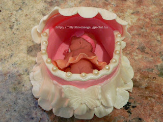 Egy jabb babablcst ksztettem egy cukorbabval szjban egy cumival. Most kt sor csipkt tettem a blcs kr. A blcs szlt ehet cukorgynggyel dsztettem.