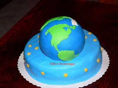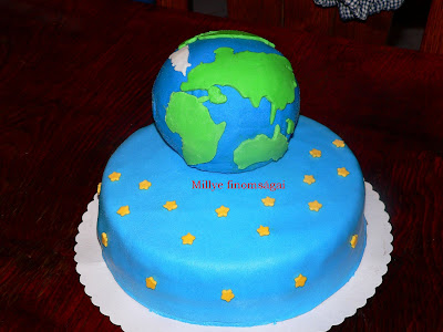 Nem is olyan egyszer fldgmb tortt kszteni mint ahogy elszr gondoltam.... A szoksos tortalapot csinltam csak most annyi a vltozs, hogy a 2 tojsos "verzibl" stttem kettt, kakapor nlkl. Fztt csokikrmmel tltttem meg. A fldgmb kekszmasszbl kszlt.