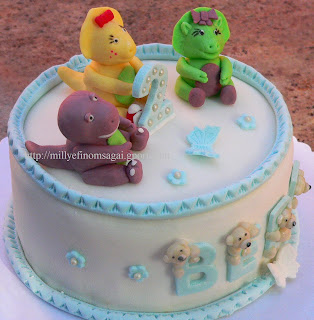 Elkszlt Zsu bartnm kisfinak szletsnapi tortja. Elgedett vagyok vele nagyon. Mutats lett szerintem. Sima pisktt stttem amit orosz-krmmel tltttem meg. A torta aljt s tetejt is kicsipkztem. A tortra a dszeket royal icinggel "ragasztottam" fel.