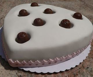 Ismt bonbondoboz tortt ksztettem. A sima pisktt fztt csokikrmmel tltttem meg. Igazbl nem szeretek vilgos borts al stt krmet tenni de most kln krs volt hogy csokikrmmel legyen tltve. A tetejt a masnit elznap ksztettem el hogy kellkpp megszilrduljon.