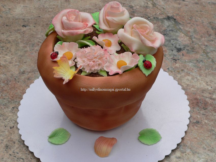 Nagyon j bartunk krte ezt a tortt. A virgokat elz nap ksztettem el s msnap festettem airbrush segtsgvel. A virgok s a levelek marcipnbl s fondantbl kszltek. A torta tejsznes fztt krmmel lett megtltve amibe meggyet tettem. Igazbl feketeerd torta lett volna a krs de mivel az tl lgy krm ezrt nem lehet burkolt tortba tlteni mert a burkolat slya kinyomn a krmet.... remlem zlett s tetszett az nnepeltnek.