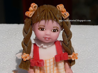 Elkszlt a 3. cuki baba is :D azt hiszem t is megtartjuk :D Legalbbis a nagylnyom "lestoppolta" :D Neki mr kszlt papucs is a lbra marcipnbl, illetve kapott egy szp fonott marcipn hajat is. Szasza lett a neve ha mr csaldtagg avanzsldott :)