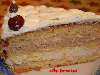 Karcsonyi vendgsgbe mentnk s ezt a tortt stttem ebbl az alkalombl. Vanlis pisktalapot stttem amit tejsznes csokikrmmel s tejsznes kvkrmmel tltttem meg. NAgyon finom lett.