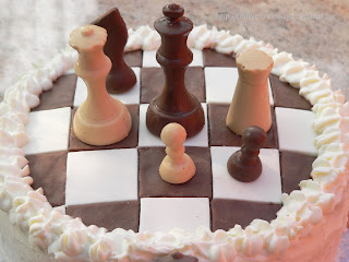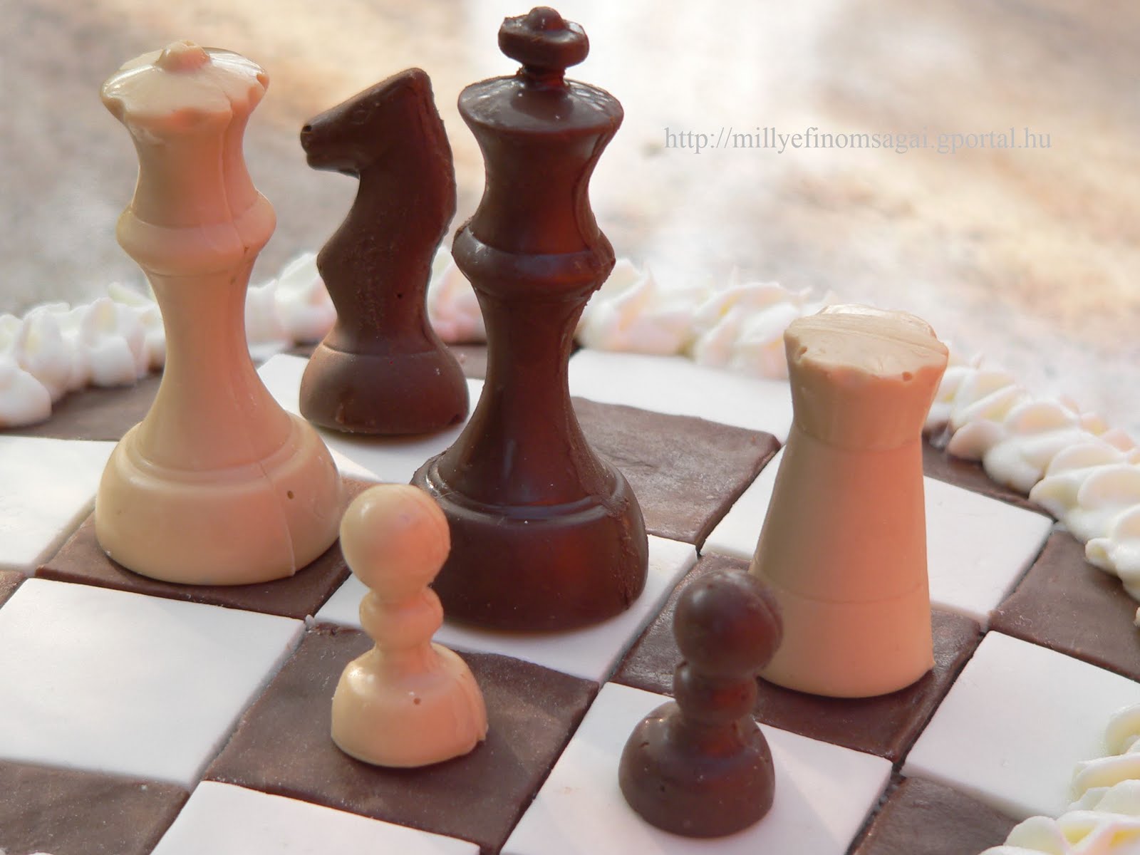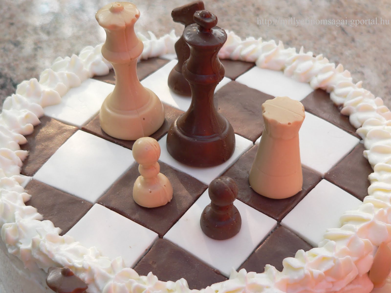 Ezt a tortt a frjem ccsnek ksztettem a szletsnapjra. Sima pisktt stttem amit tejsznes trkrmmel tltttem meg. A torta oldalt s a tetejnek a szlt tejsznhabbal dsztettem. A torta tetejn a ngyzetek plasztik csokibl vannak. A sakk figurk fehr illetve tejcsokibl kszltek. A plasztik csoki receptje: