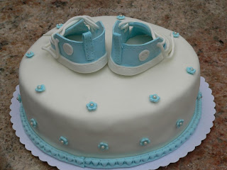 Elkszlt a baba cips torta :) Sima pisktt stttem, amit hromfel vgtam s tejsznes trkrmmel tltttem meg.   A tortt virgokkal s ehet gyngykkel dsztettem.