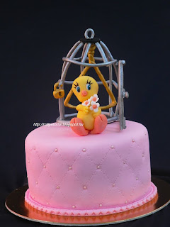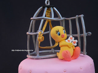 Nagyon szeretem ezeket a csajos rzsaszn cuki tortkat az r csak hab a tortn, hogy csrikt is kszthettem hozz. Az eredeti fellls az volt hogy formatorta lesz, de mivel csriknek nagy a feje ezrt nem lett volna stabil, aztn jtt a remek tlet hogy egy kalitkt fogok kszteni s az lesz a torta tetejn a kis mesehssel :)  A kalitka cukormasszbl kszlt (amit lszterfestkkel festettem le), csrike marcipnbl van. A torta tejsznes csokikrmmel lett megtltve. A torta oldalra rombusz mintt ksztettem s rzsaszn cukorgynggyel dsztettem az aljt csipkzcsipesszel mintztam.