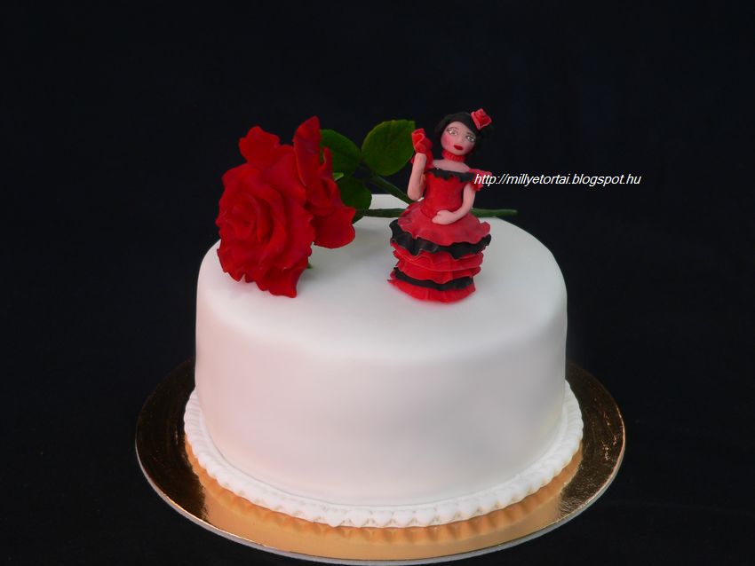 Egy zumba fitness oktatnak kszlt ez a torta a szletsnapjra aki nagyon szereti a spanyol tncot is, gy kapott egy spanyol tncosnt egy vrs cukorrzst s egy cukormassza jelet is a tortjhoz. A kakas pisktalapok tejsznes csokikrmmel lettek megtltve. Lefotztam a zumba jel nlkl is a tortt. Nekem gy jobban tetszik :)