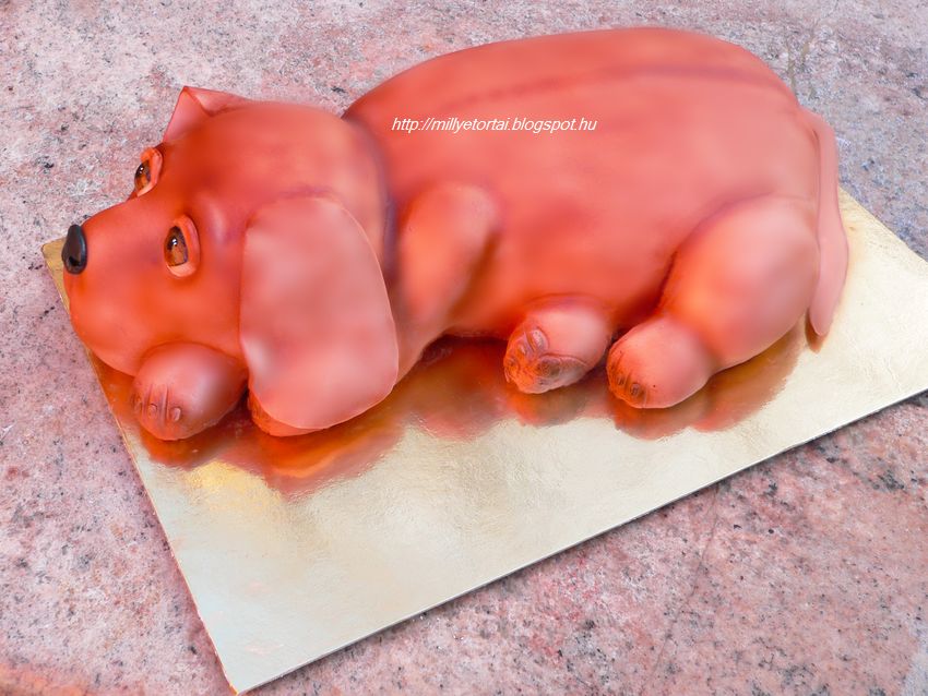 letem els 3D kutys tortjt ksztettem ma el. Kricky sok kutya tortt ksztett mr. Nla lttam tortbl kszlt leth kutyusokat s eldntttem, hogy ha valaha is lesz ilyen jelleg felkrsem akkor az blogja lesz a mrvad. Az n tortm messze nem olyan szp mint Kricky de taln ha a legkisebbik gyermekem nagyobb lesz akkor el tudok hozz menni tanfolyamra megtanulni mindazt amit tud. De maradjunk az n tortmnl...  szinte leszek... nekem nem lenne szvem felvgni egy ilyen szomor szemekkel nz kutyust. A torta tejsznes trkrmmel lett megtltve. A kutyt airbrush-al festettem le. A szemt ecsettel festettem meg. A nzija marcipnl van.