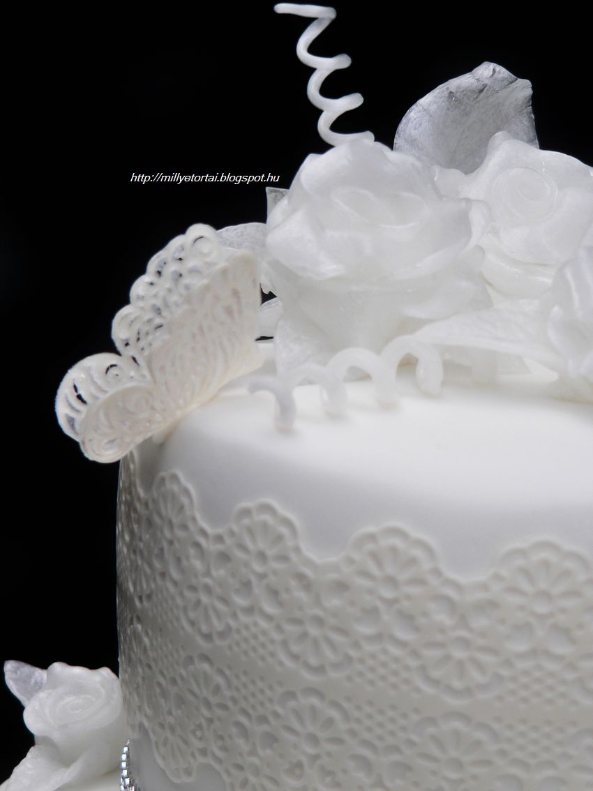 Eskvi torta karamell rzskkal, cukorcsipkvel