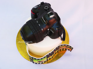 Egy vadsznak kszlt ez a torta. A fotzs a hobbija gy a tma adott volt. Az als tortra krbe s kacskaringzva erdei fotk kerltek cukorlapbl. A fnykpezgp-torta s az als szint is tejsznes trkrmmel lett megtltve ami kz ropogs csokirteget tettem.