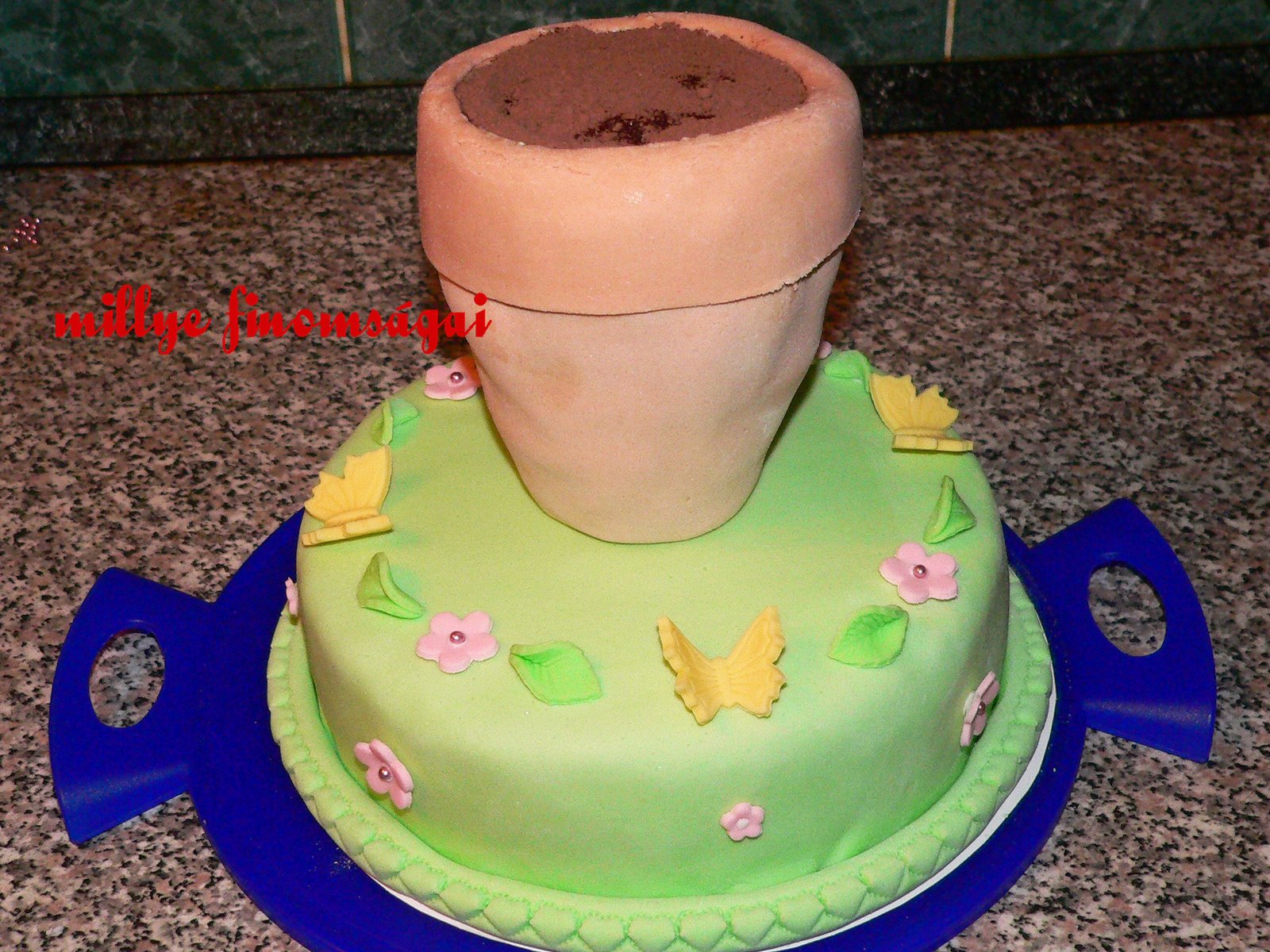 Ismt egy virgcserp torta s ismt trkrm... most nagy slger a trkrmes torta nlunk :) A torta aljt csipkzvel dsztettem. A virgcserpbe kakaport tettem. A virgcserp is trkrmmel van megtltve.