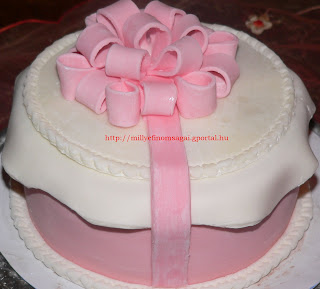 Anyu szletsnapjra ksztettem ezt a bonbondobozos tortt rzsaszn ehet masnit ksztettem s ezzel "ktttem" t a "dobozt" Fztt csokikrmmel tltttem meg a sima pisktt. A torta tetejre lyukakat vjtam a bonbonoknak amiket szintn n ksztettem el. Mogyorkrmmel s egsz mogyorval tltttem meg a bonbonokat s miutn megdermedtek beletettem a mlyedsekbe. A torta tetejre ksztettem mg egy tett is amivel befedtem legvgn a "bonbonosdobozt".
