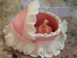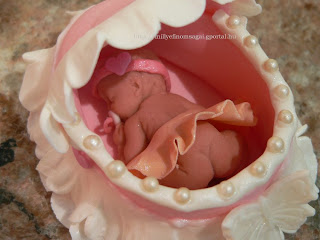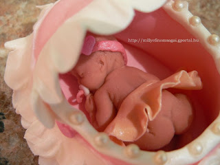 Egy jabb babablcst ksztettem egy cukorbabval szjban egy cumival. Most kt sor csipkt tettem a blcs kr. A blcs szlt ehet cukorgynggyel dsztettem.