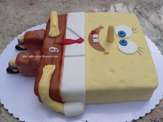Ismt spongyabob tortt stttem egy 6 ves kisfinak :)  A krs az volt hogy tejsznes trkrmmel legyen megtltve. A tejsznes trkrm tetejre olvasztott csokit tettem ami mg zletesebb teszi az amgy is finom tortt. Spongyabob nadrgjt airbrush-al fjtam le.