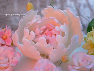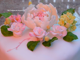 Imdom a cukorvirgos tortkat kszteni mg akkor is ha sok munka van vele. Na nem a torta feldsztsvel hanem a cukorvirgok elksztsvel. Glutnmentes tortt ksztettem rizslisztbl amit tejsznes trkrmmel tltttem meg. A cukorvirg pnksdirzsa most kimondottan mutats lett a hatalmas szirmaival. A virgokat telfestk porral szneztem. A leveleket folykony telfestkkel fjtam le airbrush-al.. Remlem az nnepeltnek is tetszett s zlett.