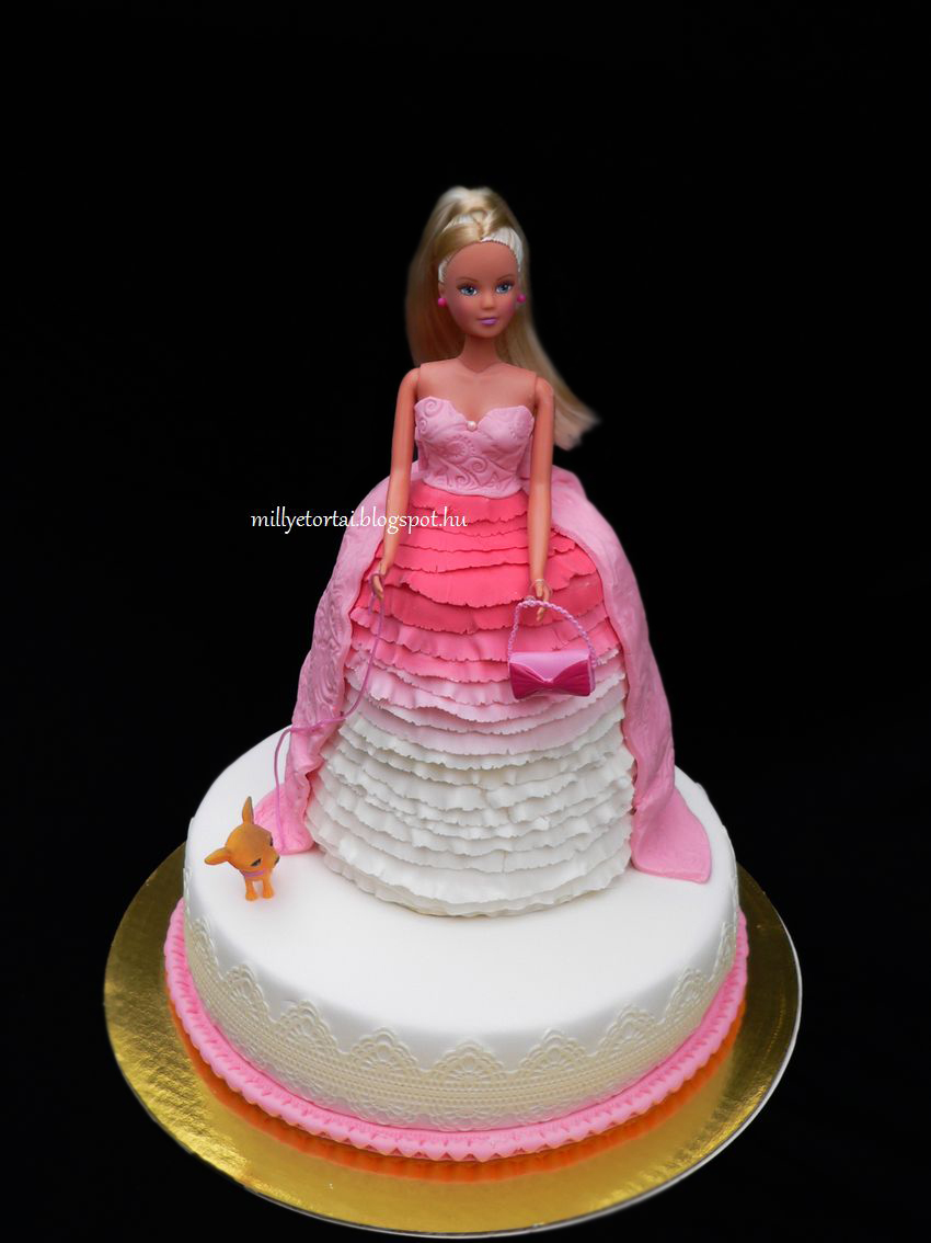 "Ezer" ve nem ksztettem Barbie tortt, ezrt nagyon megrltem a felkrsnek. A kislny kvnsga az volt hogy a dobozban tallhat tska s a kutyus is legyen majd a tortn. A tltelk tejsznes trkrm ropogs csokirteggel.A fodrok elksztse elg id s munkaignyes de a vgeredmny mindenrt krptol. pp ma rt Bogi, hogy nagyon tetszett a torta a kislnynak s hogy a szoknya rszt nem engedte felvgni :D