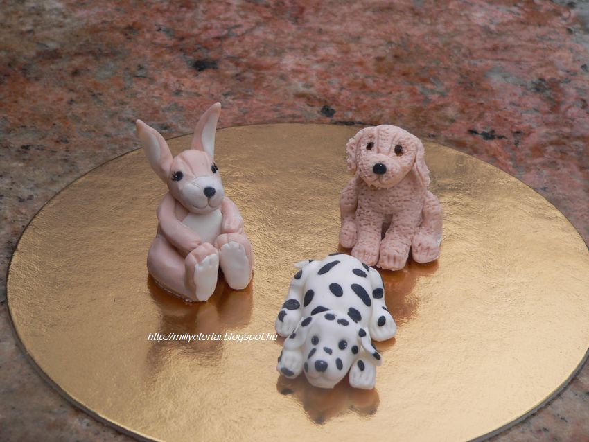 Szoninak a kedvenc plss llatkit rktettem meg ezen a tortn. Imdja az ikes nyuszit s a kutyusokat valamint a masnikat is. Remlem rjuk ismer a tortn :)  Fztt csokikrmmel tltttem meg a tortkat.