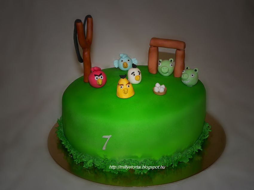 Ez az els Angry birds tortm. A jtk lnyege hogy egy tlmretezett cszli segtsgvel kell elpuszttani a zld malacokat, a cszli tltnyei maguk a madarak. A figurk knnyen elkszthetk.  Az unokatestvrnk kisfinak kszlt ez a torta amit tejsznes trkrmmel tltttem meg a tr rtegek kz ropogs csokirteget tettem. A zld sznt airbrush-al fjtam r a tortra.